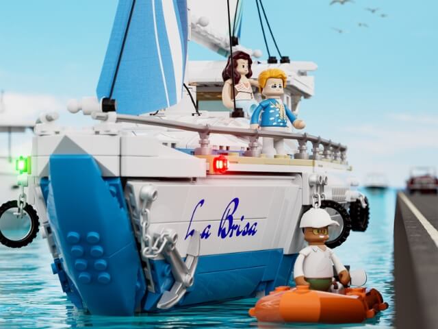 Ja, absolut. Funwhole verwendet bei diesem Set viele Teile in „Metallic Silver“ (glänzendes Silber) statt einfachem Grau. Besonders Elemente wie der Anker, das große Steuerrad, die Ketten und Beschläge wirken dadurch täuschend echt wie polierter Edelstahl. Das unterstreicht den Charakter einer edlen Hochsee-Yacht enorm und lässt das Modell im Regal regelrecht funkeln.