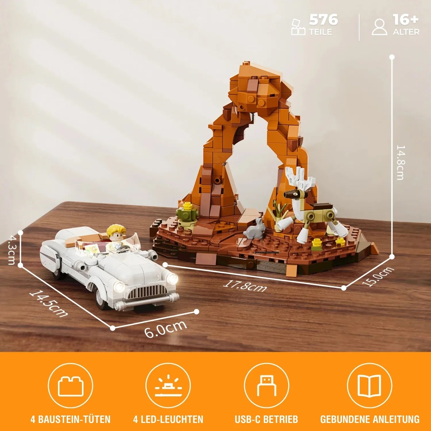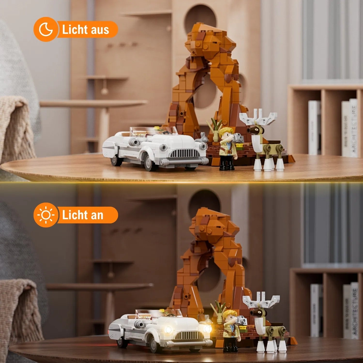 | Besonderheiten | Road Trip Szenerie mit beleuchtetem 50er-Jahre Cabrio & Felsbogen in SNOT-Bauweise |